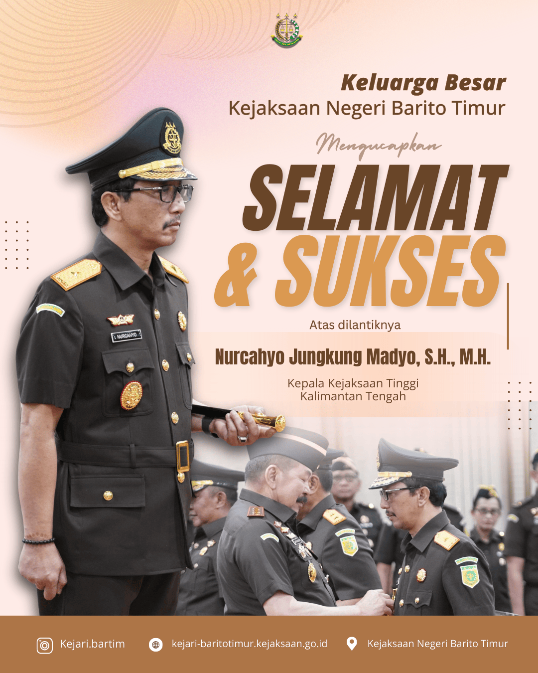 Kepala Kejaksaan Negeri Barito Timur Beserta Jajaran mengucapkan: Selamat dan Sukses Atas Dilantiknya Bapak Nurcahyo Jungkung Madyo, S.H.,M.H. sebagai Kepala Kejaksaan Tinggi Kalimantan Tengah.